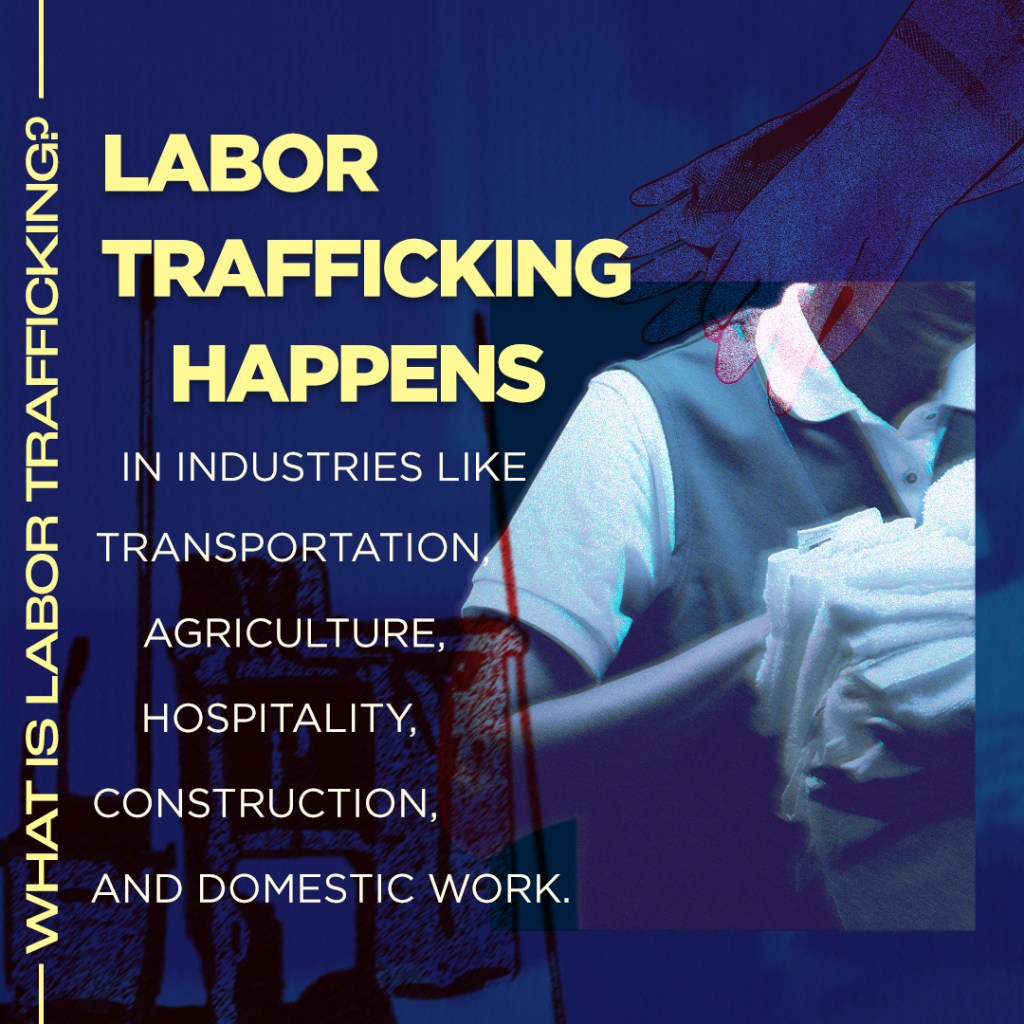 These graphics aim to break down what labor trafficking is, and how they impact victims.