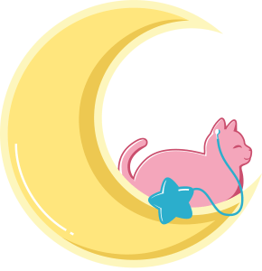 This is the final logo for the streamer Remoonla, featuring a cat on a moon listening to music through the stars.