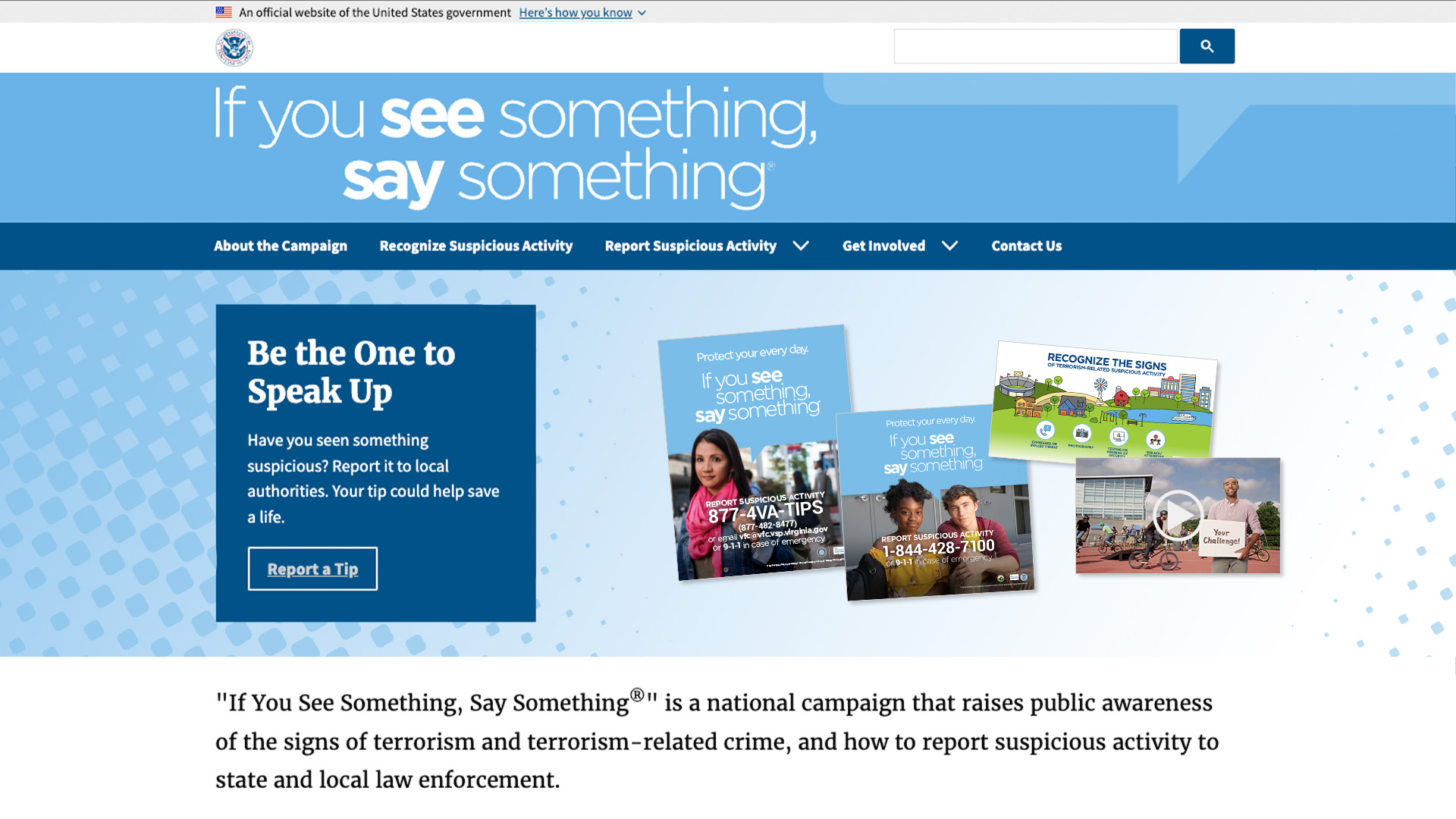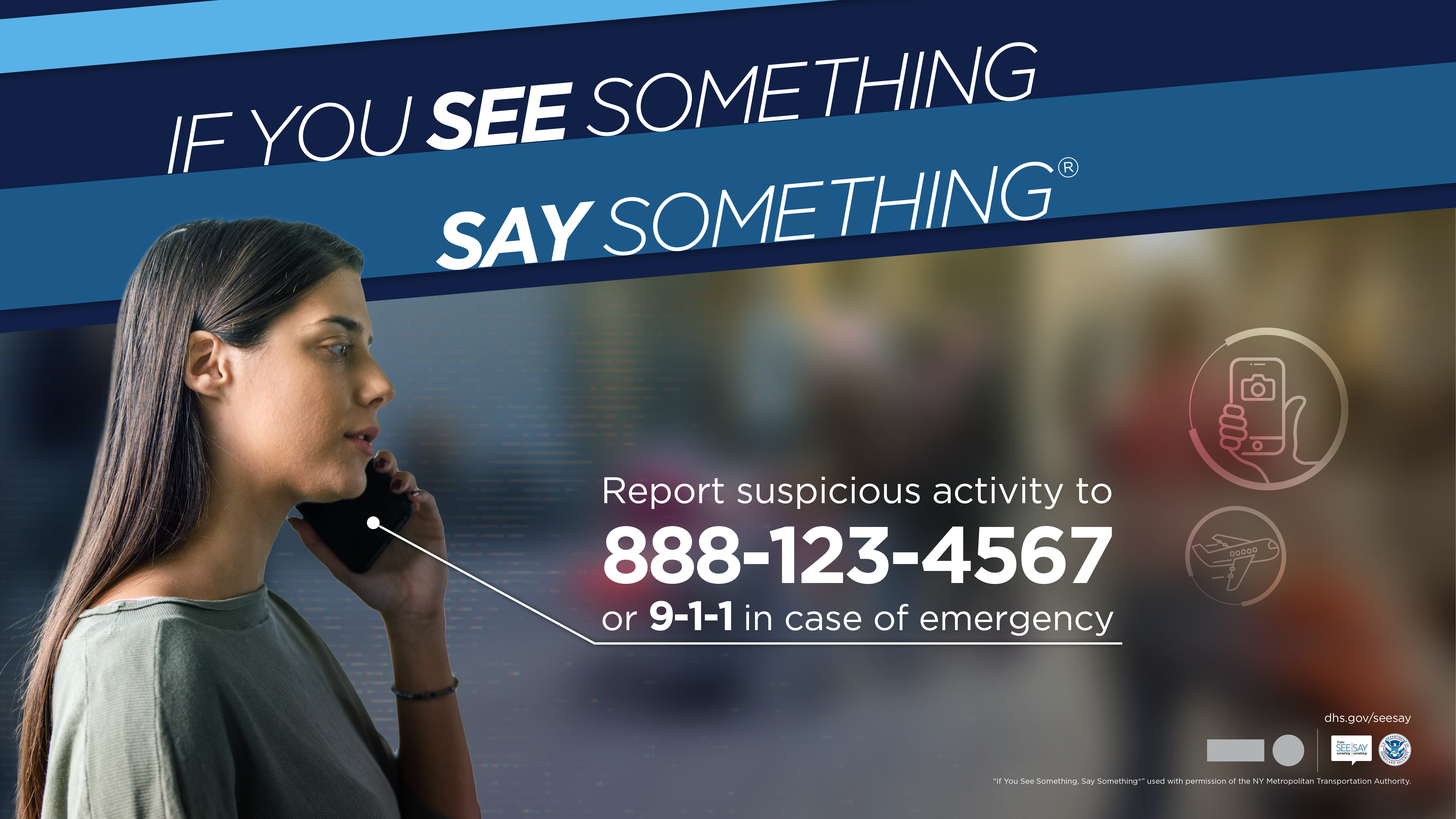 “If You See Something, Say Something®” is a national campaign that raises public awareness of the signs of terrorism and terrorism-related crime, and how to report suspicious activity to state and local law enforcement.
