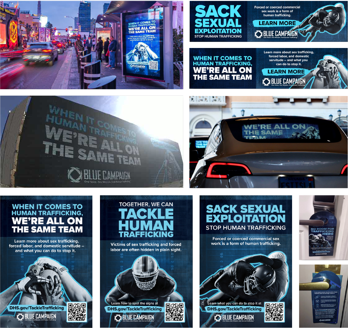 Working with Blue Campaign, I was able to flex a lot of my creative skills. They wanted eye-catching, modern designs that would help in capturing the audience’s attention, and an increased production of animated posts for social media. We also had many local campaigns to raise awareness against human trafficking. One of which was a massive campaign for the Super Bowl in 2024. I led the design team to creating all assets and animations, and not only was the client ecstatic, but it led to winning gold at the dotCOMM awards.