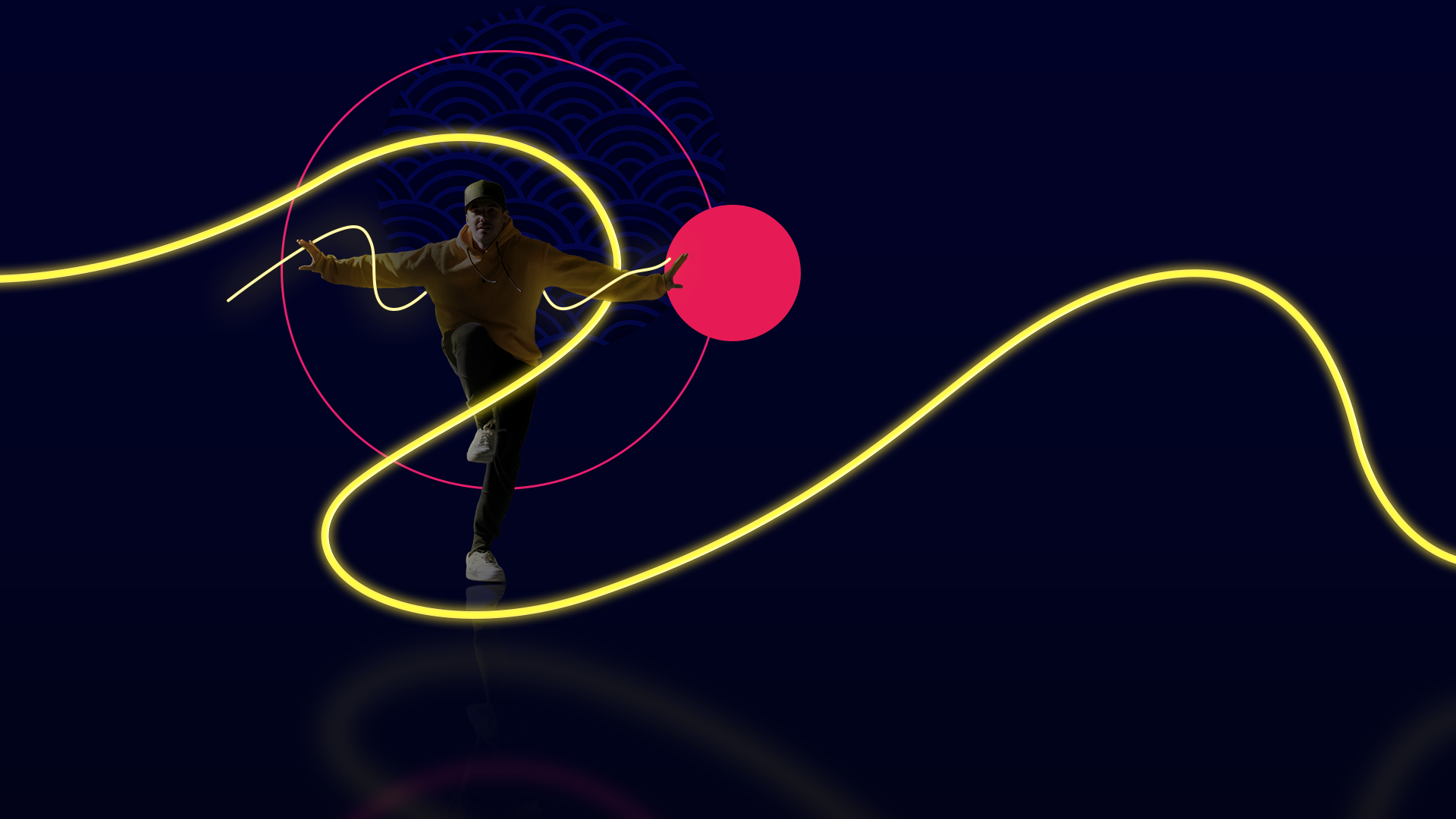 As someone who appreciates freestyle dancing, I wanted the design to emphasize the free flow nature of the show. I imagined each crew would have dancers that dance in different styles, like hip-hop, locking, b-boying, and so on. I used the neon line element as a through-line to lead the viewer to showcase each dancer, while also having it be very flexible and bendy to again highlight the freestyle element, and to create visual interest.