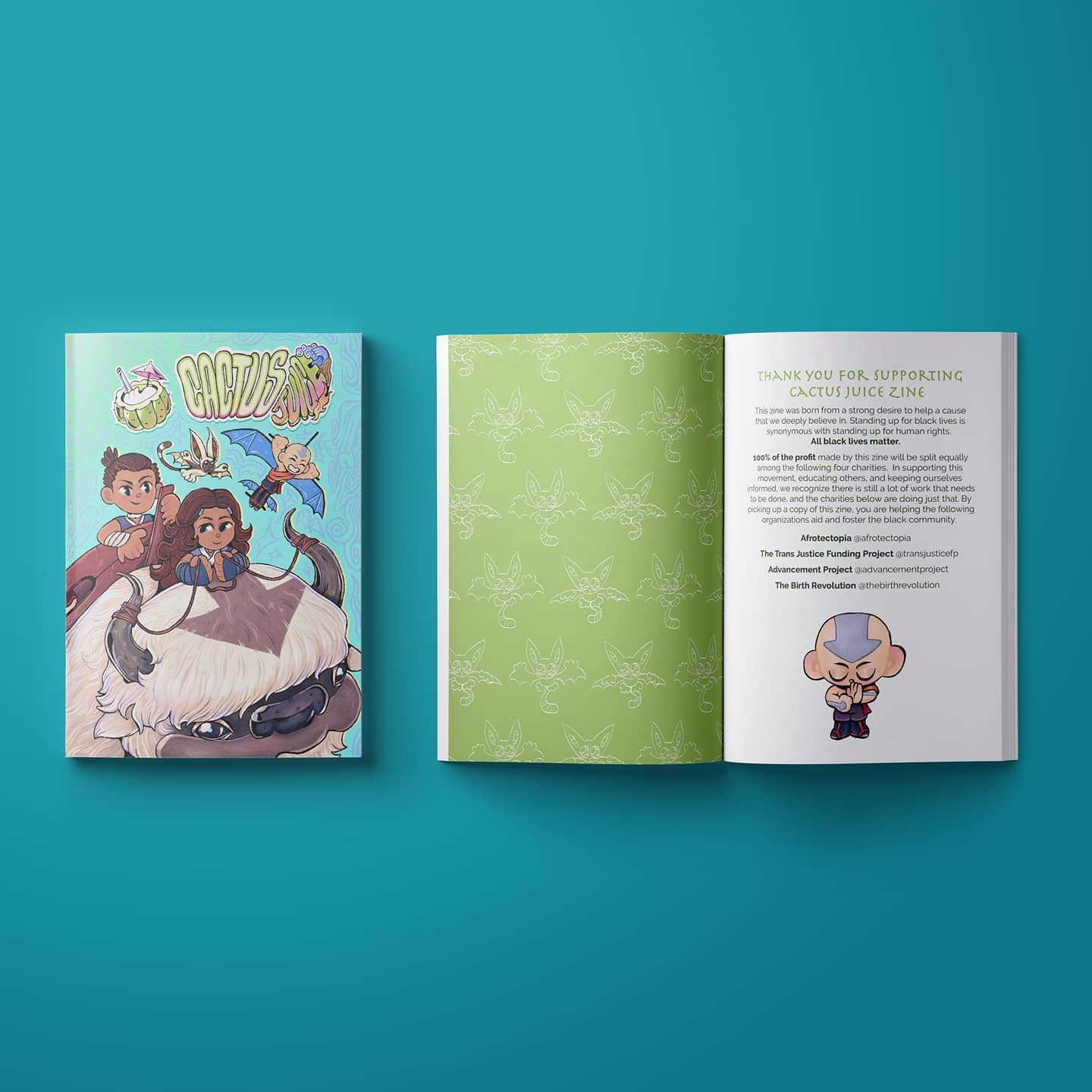 This zine was born from a strong desire to help a cause that I and the zine organizers deeply believe in. Standing up for black lives is synonymous with standing up for human rights. All black lives matter. 100% of the profit made by this zine will be split equally among the following four charities. In supporting this movement, educating others, and keeping ourselves informed, we recognize there is still a lot of work that needs to be done, and the supported charities are doing just that. This project was a huge collaboration of over 100 artists over just two months.